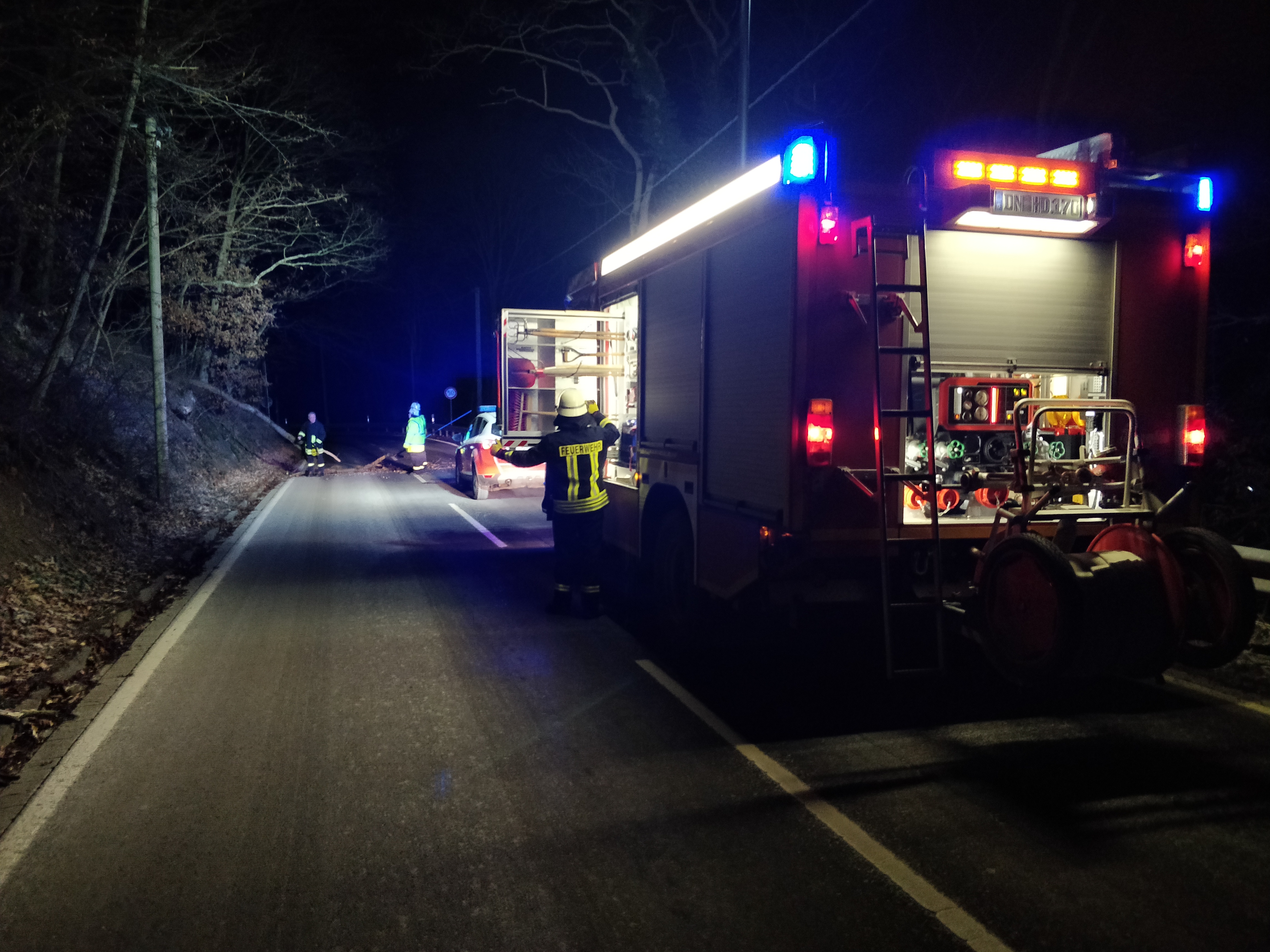 Eine Dieselspur zog sich von Brandenberg über die K-30 bis nach Untermaubach. Dort war ein Pkw-Fahrer mit einem undichten Dieselfilter liegengeblieben und alarmierte die Feuerwehr.