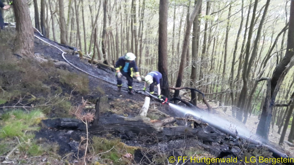 Zu einem schweren Verkehrsunfall mit einem Motorradfahrer wurde die Feuerwehr Hürtgenwald nach Vossenack auf die L218 (Panoramastraße) alarmiert. Aus bislang ungeklärter Ursache verlor ein Motorradfahrer am Ende einer Linkskurve die Kontrolle über seine Maschine und wurde dadurch über die Leitplanke geschleudert. Er stürzte ca. 10 Meter die Böschung hinunter, wo er schwer verletzt liegen blieb. Nach notärztlicher Erstversorgung wurde der Verunfallte mittels Teleskopmastbühne aus dem unwegsamen Gelände gerettet und mit einem Rettungswagen einem Krankenhaus zugeführt.
