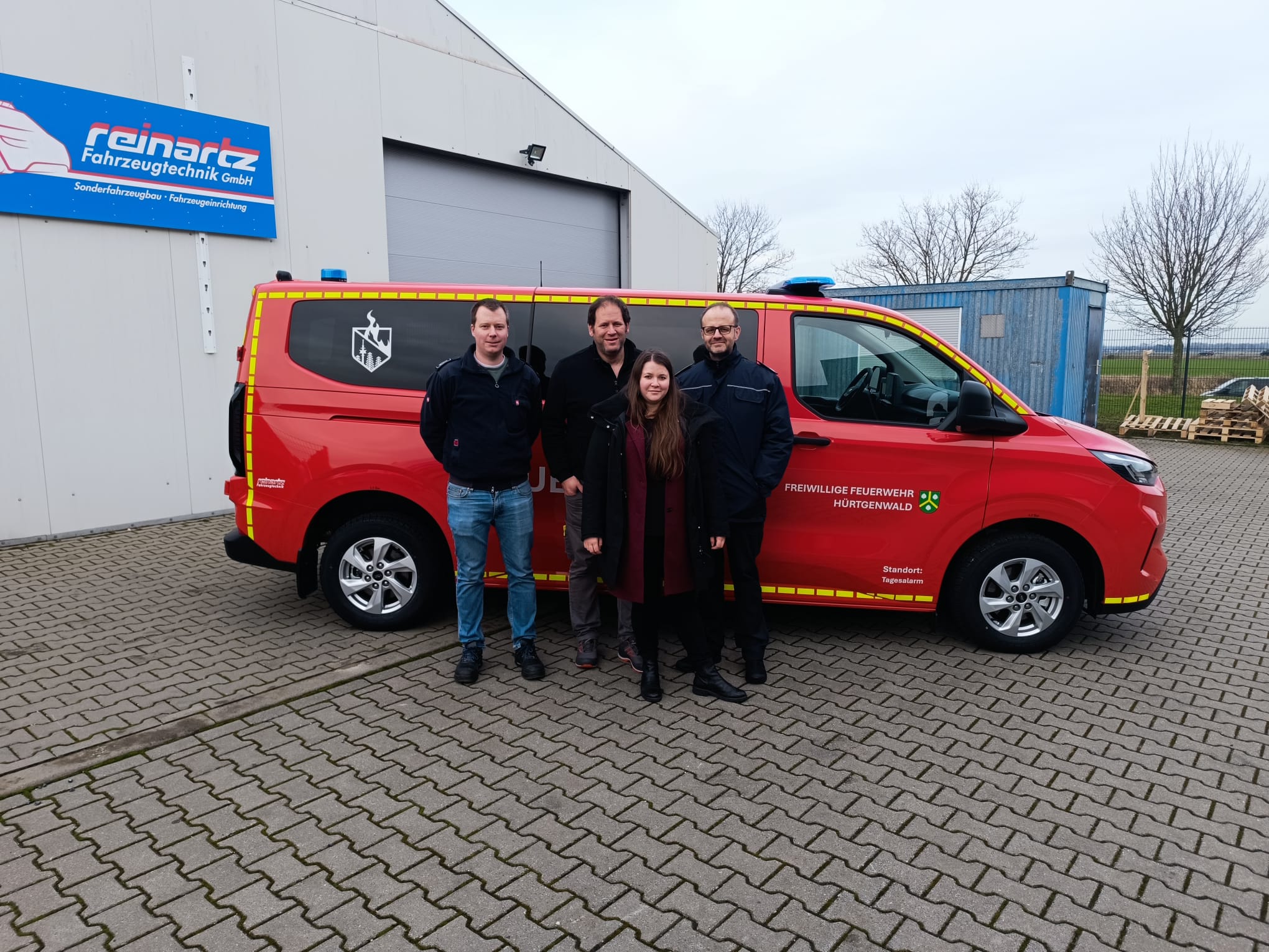 Am 04.02.2026 konnte durch die Leitung des Ordnungsamtes und die Wehrleitung ein neues Mannschaftstransportfahrzeug für die Feuerwehr Hürtgenwald bei der Firma Reinartz in Langerwehe abgeholt werden. Es handelt sich um einen neuen Ford Transit, der durch die Fachfirma nach den Bedürfnissen der Feuerwehr Hürtgenwald zum Einsatzfahrzeug umgebaut wurde. Das Fahrzeug kommt zukünftig bei der Einheit Tagesalarm (besetzt durch Mitarbeiter von der Gemeindeverwaltung und des Bauhofes) zum Einsatz.